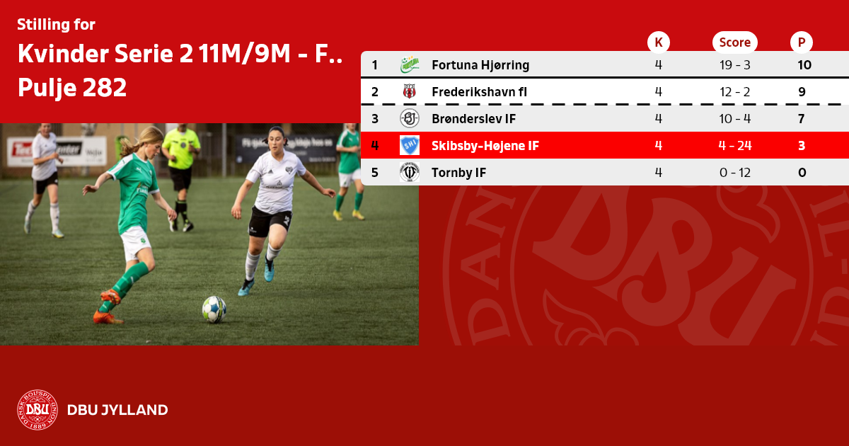 Frederikshavn fI (282), Aalborg Chang (284), Ikast FC/Vildbjerg 3 (287), Ringkøbing IF (289), Tjørring IF (290), IFSK (293), Kolding B (298).