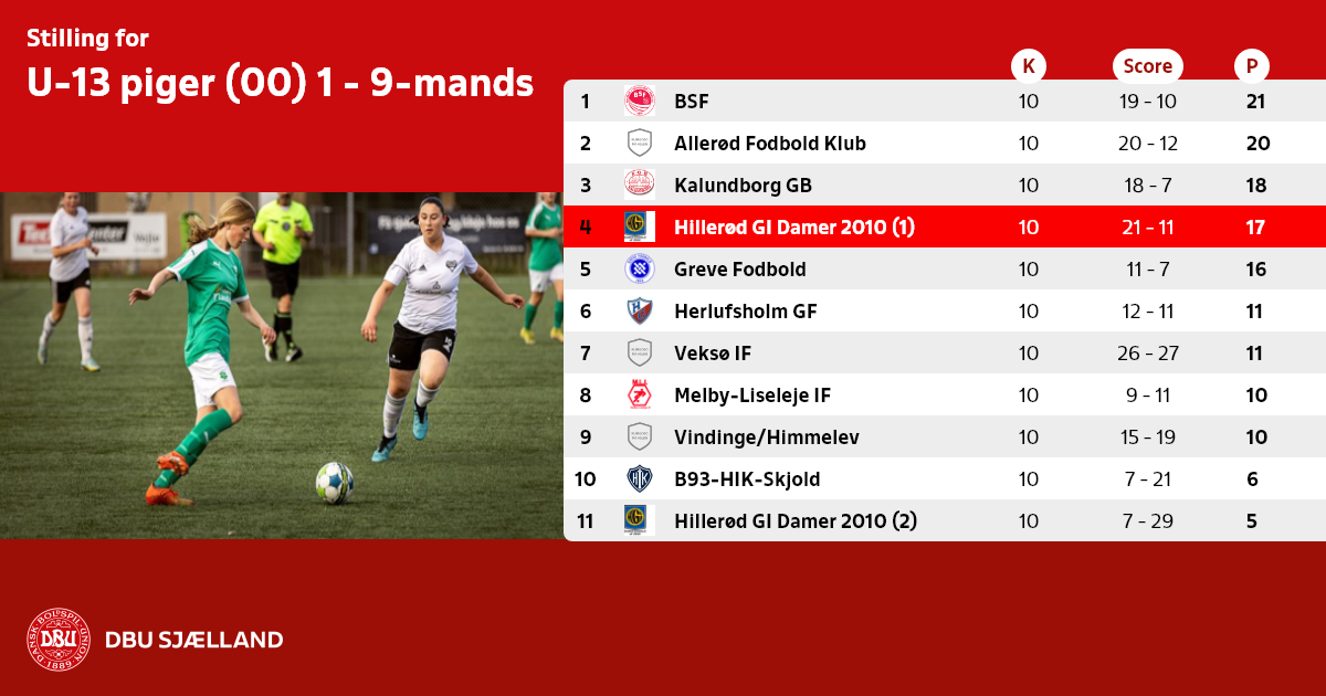 U-13 piger (00) 1 - 9-mands