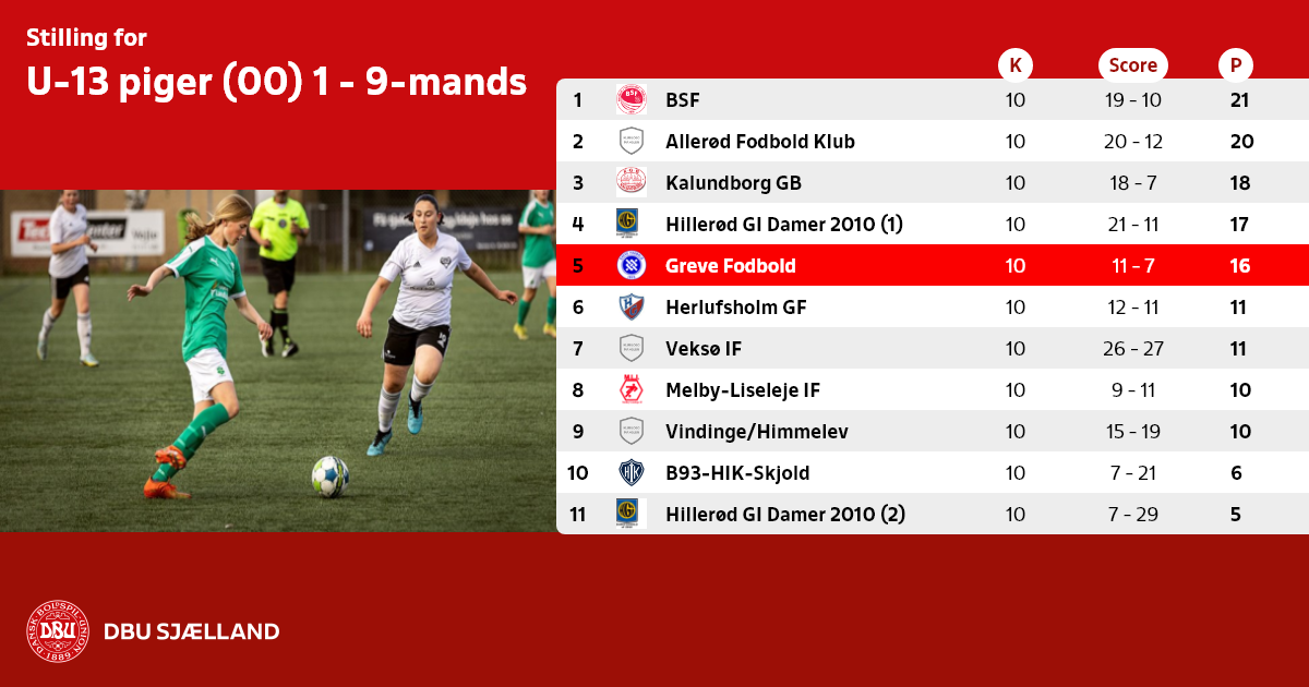 U-13 piger (00) 1 - 9-mands
