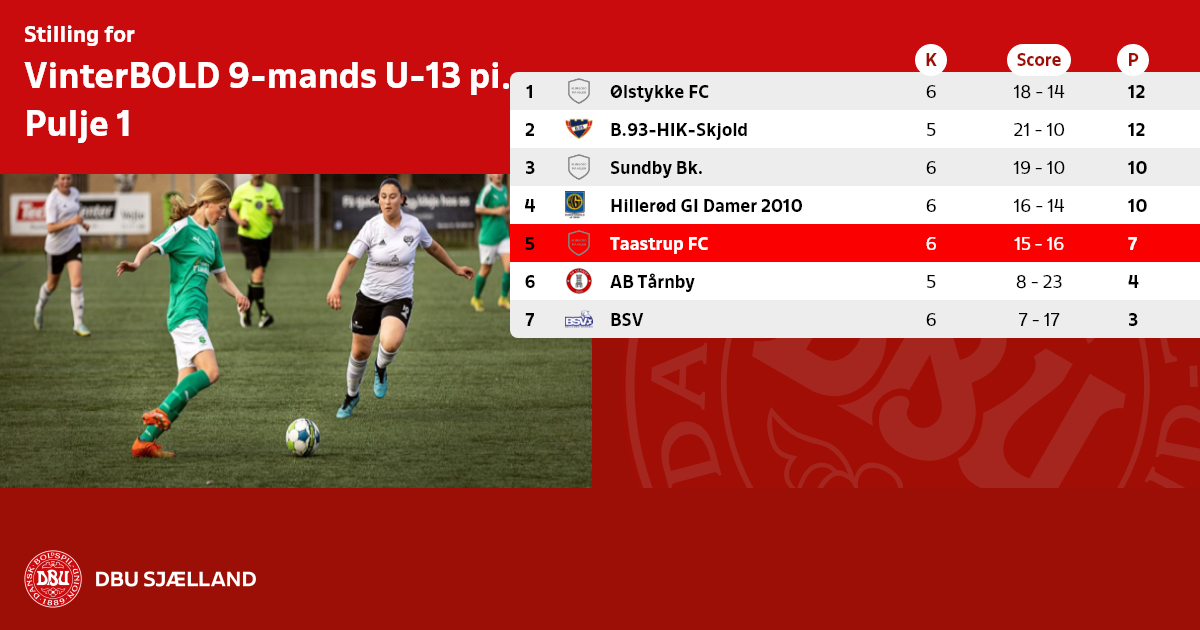 VinterBOLD 9-mands U-13 piger 1, Pulje 1