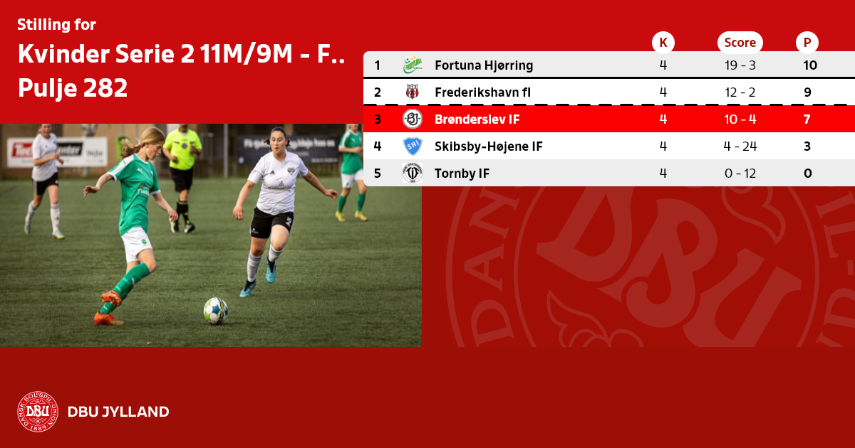 Frederikshavn fI (282), Aalborg Chang (284), Ikast FC/Vildbjerg 3 (287), Ringkøbing IF (289), Tjørring IF (290), IFSK (293), Kolding B (298).