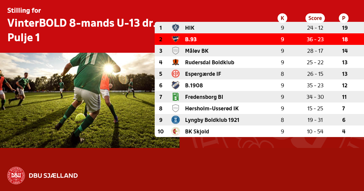 VinterBOLD 8-mands U-13 drenge 1, Pulje 1