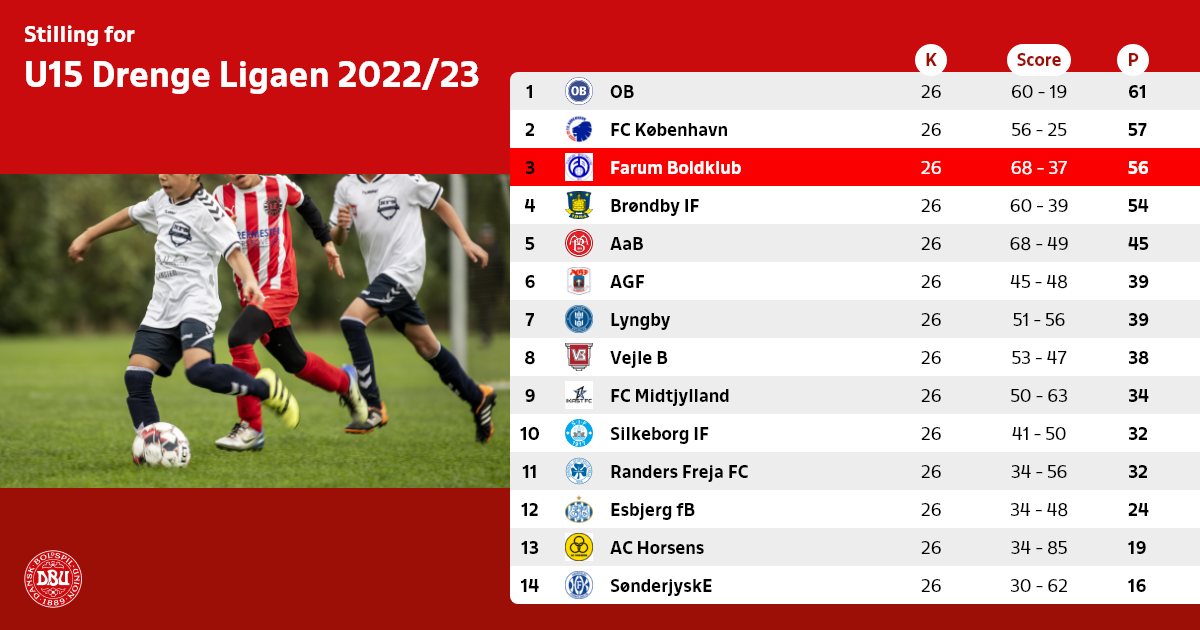 Bemærk at vinderen af straffesparkskonkurrence ved uafgjort får et ekstra point jvf. paragraf 9.1 i propositionerne for Ungdoms-DM.