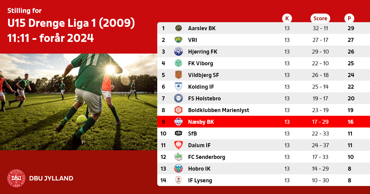 U15 Drenge Liga 1 (2009) 11:11 - forår 2024
