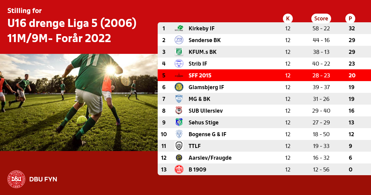 U16 drenge Liga 5 (2006) 11M/9M- Forår 2022