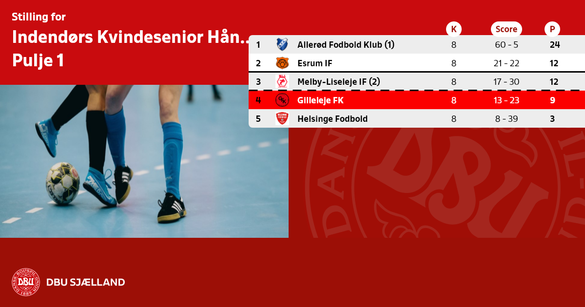 B = 20 hold rykker ned i række B til mellemrunden 14. januar 2024.