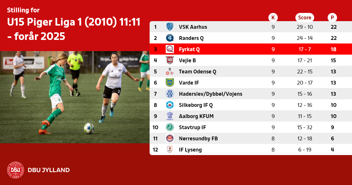 U15 Piger Liga 1 (2010) 11:11 - forår 2025