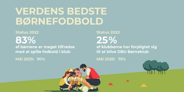 Flere børn og voksne spiller fodbold. Der opgraderes på mandskabet rundt om vores landshold. Superligahold kæmper blandt Europas bedste i internationale turneringer. Vi gør status efter det første år med ny strategi for dansk fodbold; dyk ned i mål, tal, status og resultater.