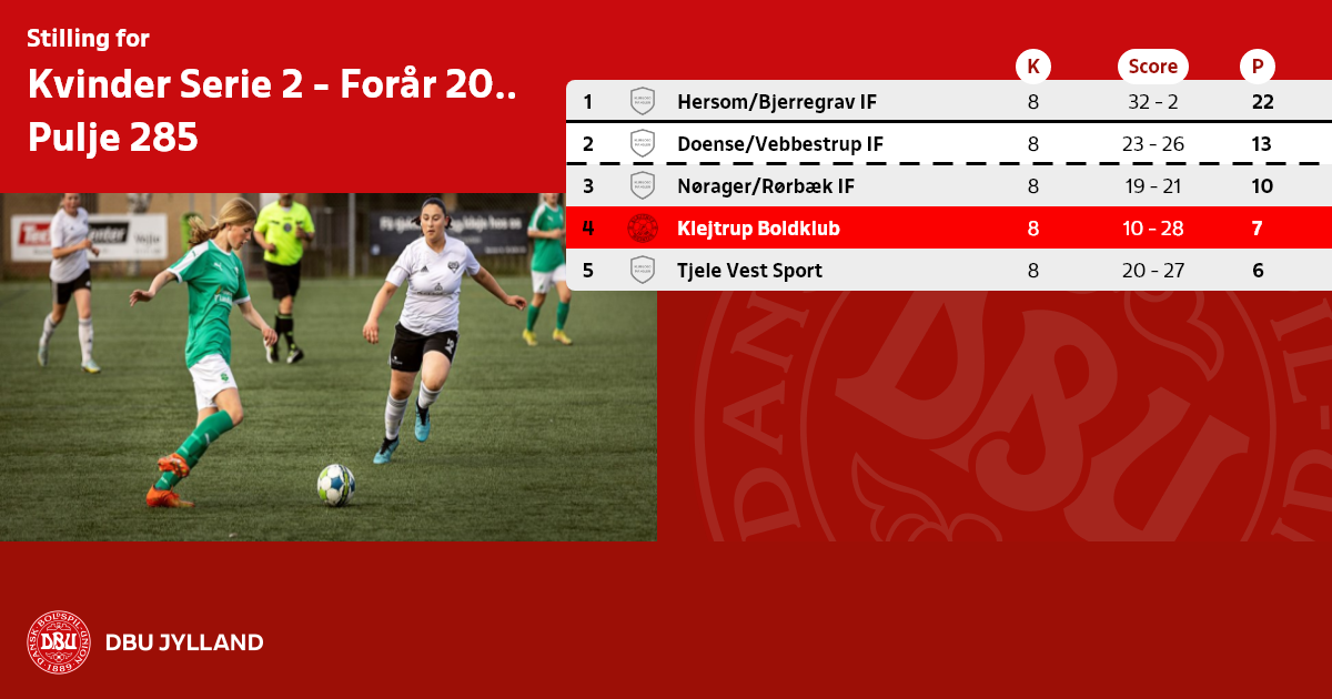 FC Solsiden (282), AaB (283), Hornum IF (284), Skive IK (286), Helsted/Fremad IF (289), FC Jura (290), IFSK (292), Hover/Ølstrup (293), Bramming B (295).