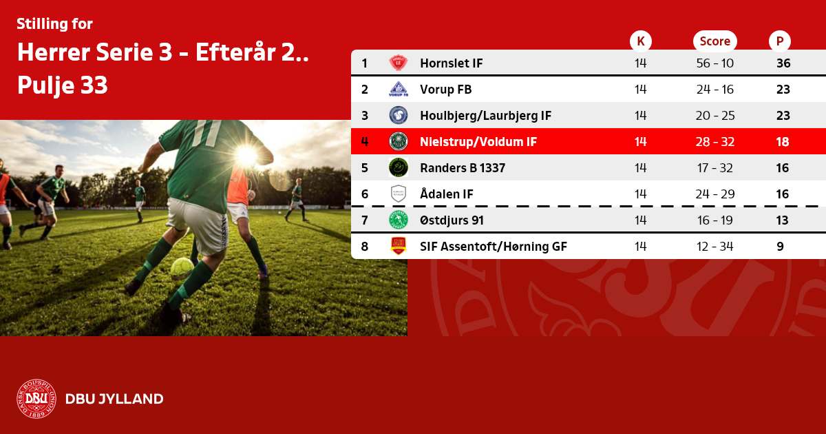 Disse 2 hold er: Svenstrup-Godthåb IF (27) og Stoholm IF (31). Der tages forbehold for protester, forkert indberettede resultater m.v.