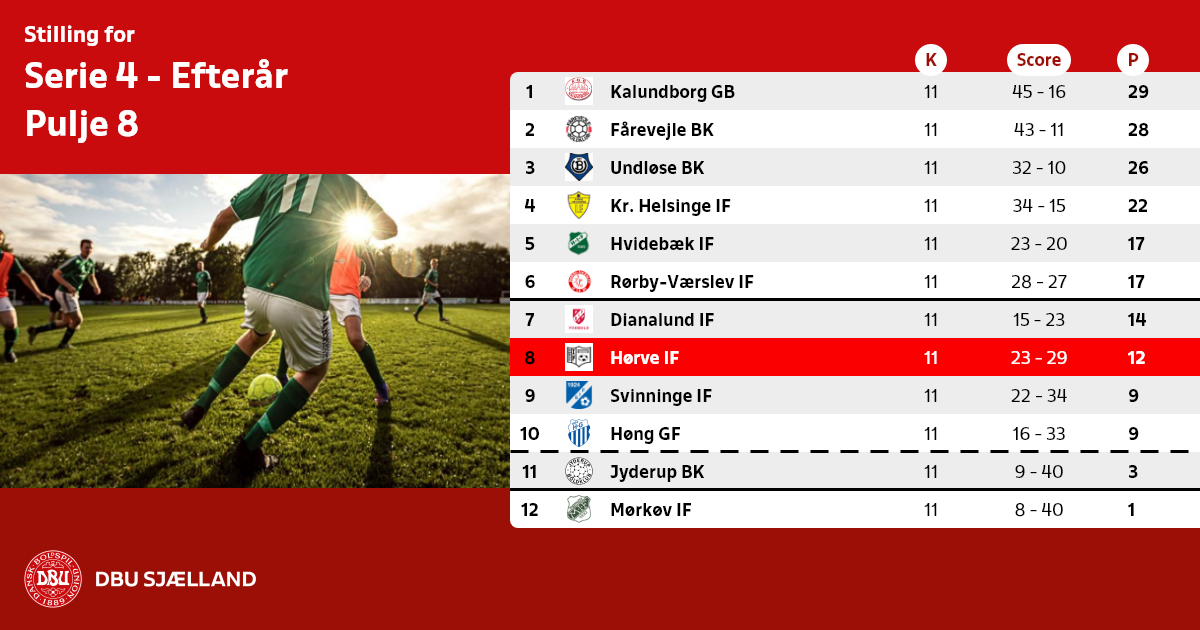Nr. 12 samt de 8 dårligste 11´ere rykker ned i forårets Serie 5