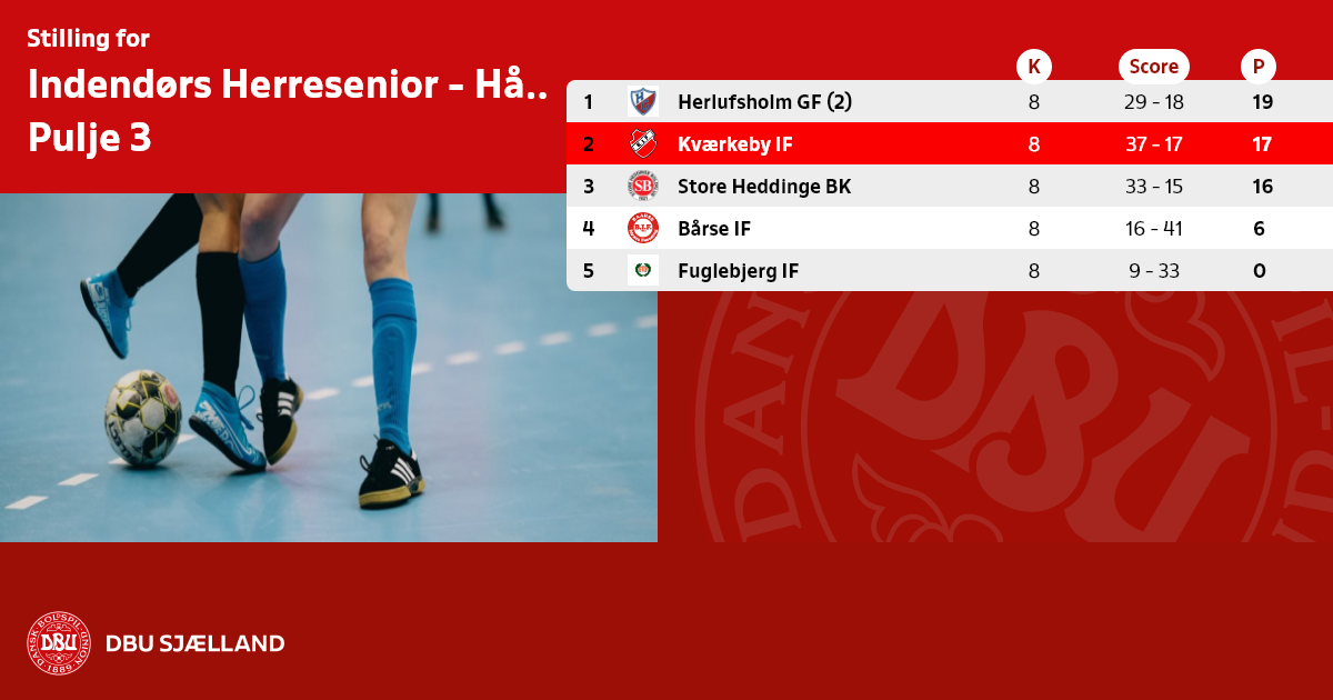 A rækken: 15 hold og 5 hold går videre til finalestævnet den 27. januar 2024 i Strøby hallen.