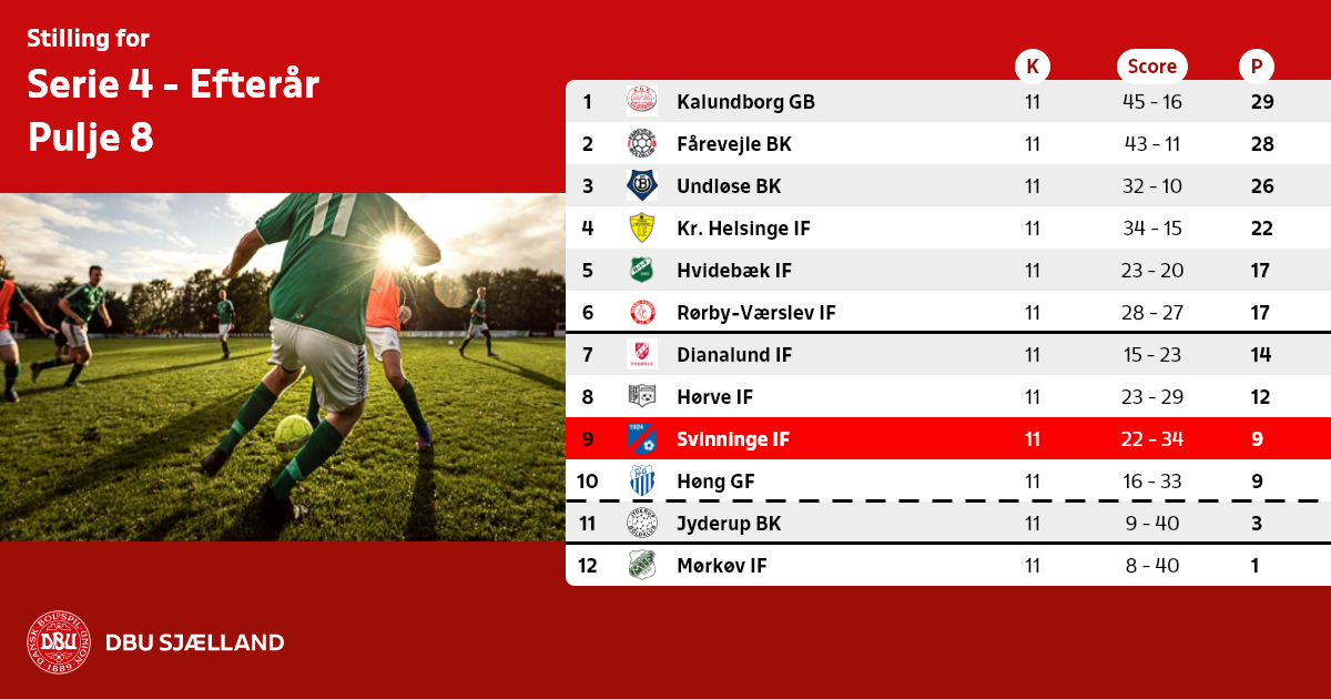 Nr. 12 samt de 8 dårligste 11´ere rykker ned i forårets Serie 5