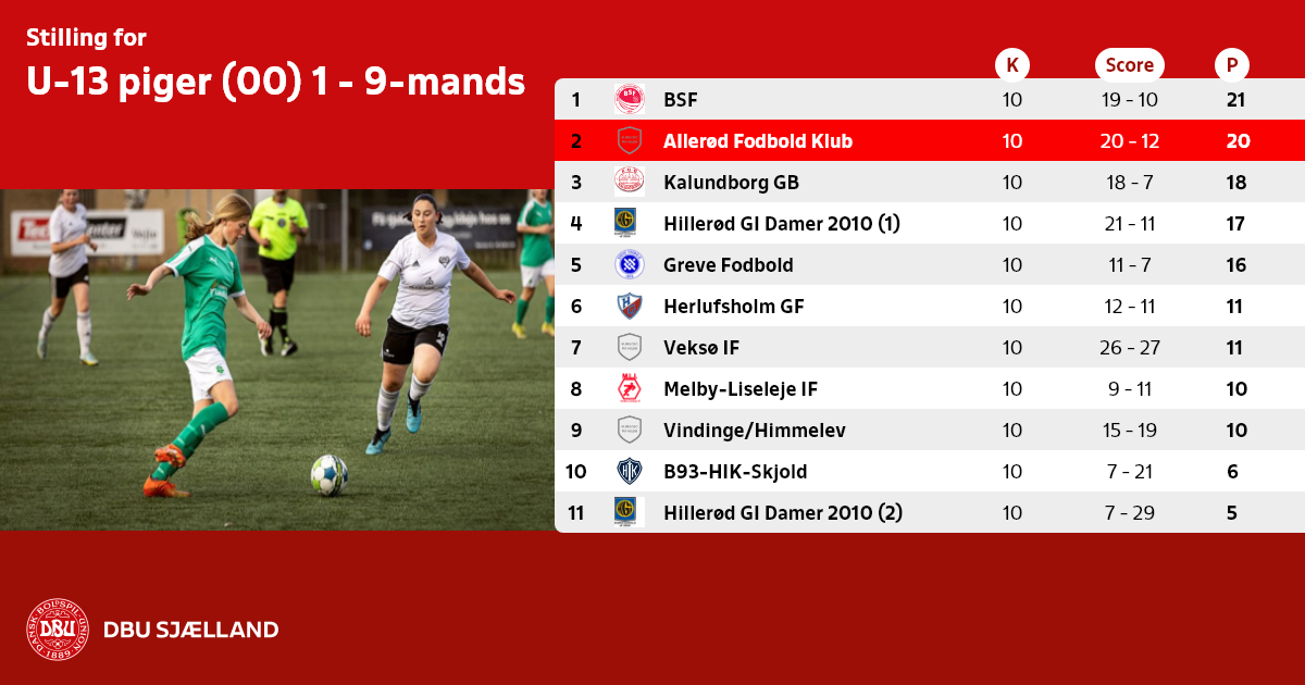 U-13 piger (00) 1 - 9-mands
