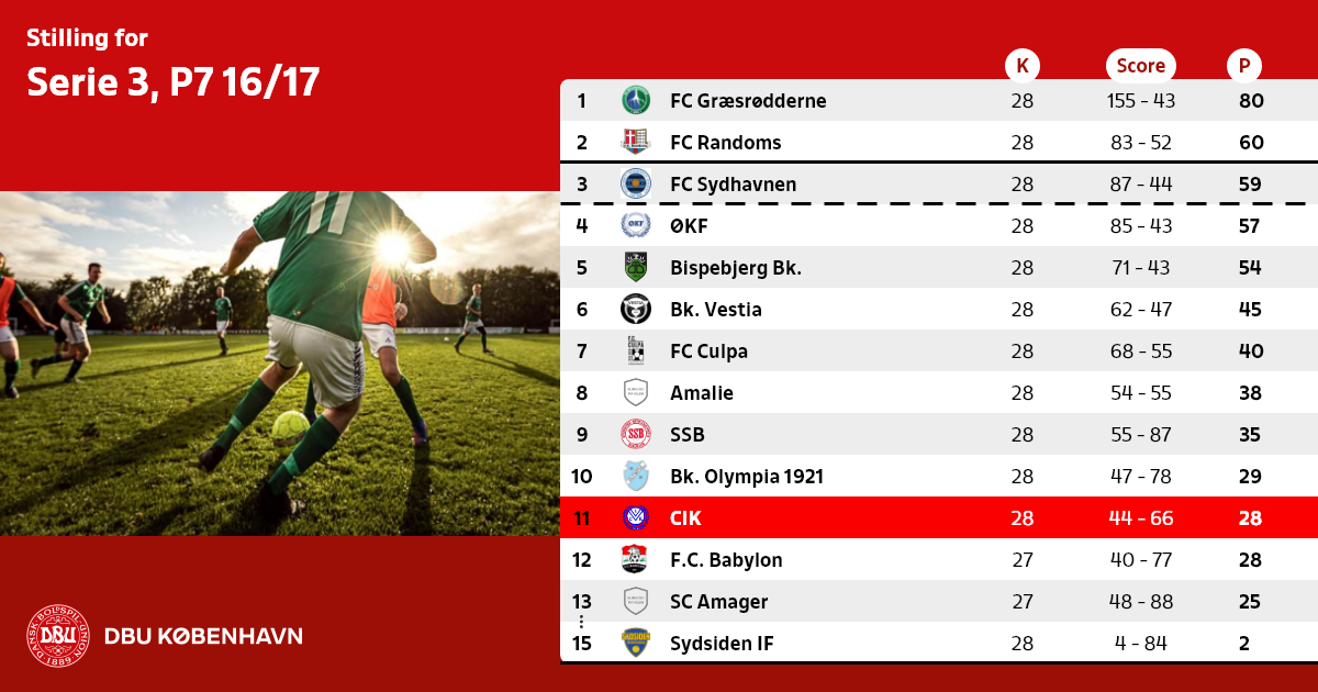 Oprykning: nr. 1 og 2 rykker op i Serie 2, pulje 4. Nr. 3 rykker op, såfremt der ikke findes et oprykningsberettiget hold fra Serie 1, pulje 3 til Københavnsserien efter 2017 forår.