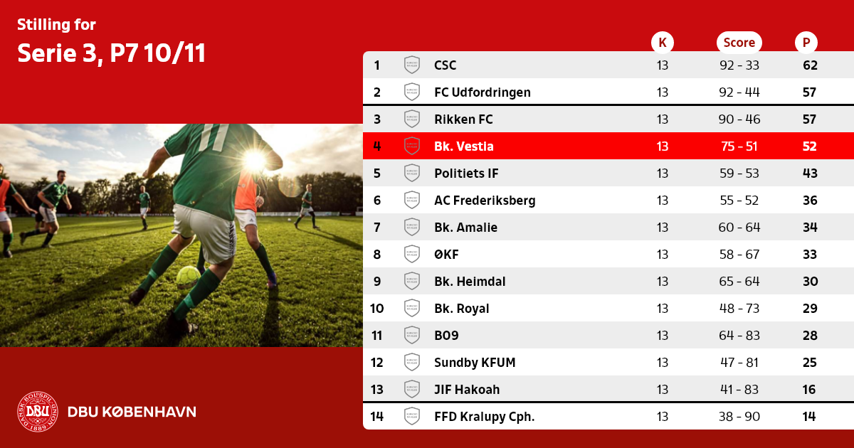Ønsker du at se efterårets resultater, kampe og stilling, så tryk HER
