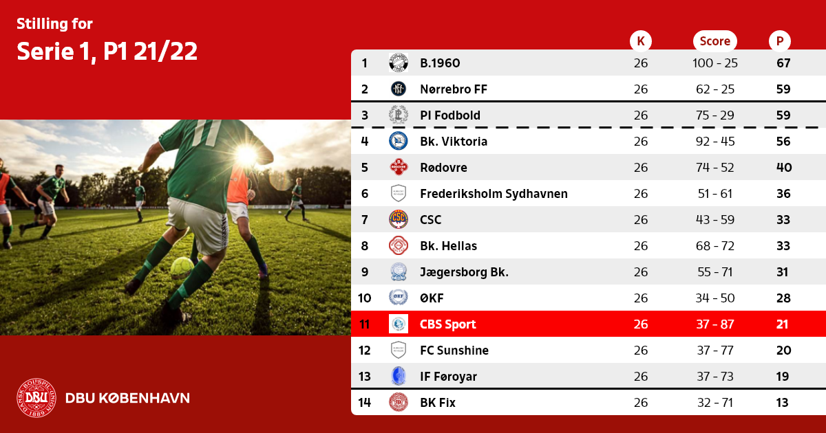 Nr. 3 rykker op, såfremt der ikke findes et oprykningsberettiget hold fra Serie 1, pulje 2 til Københavnsserien efter 2022 forår.