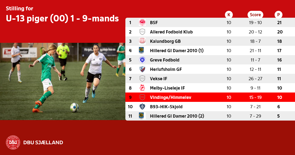 U-13 piger (00) 1 - 9-mands