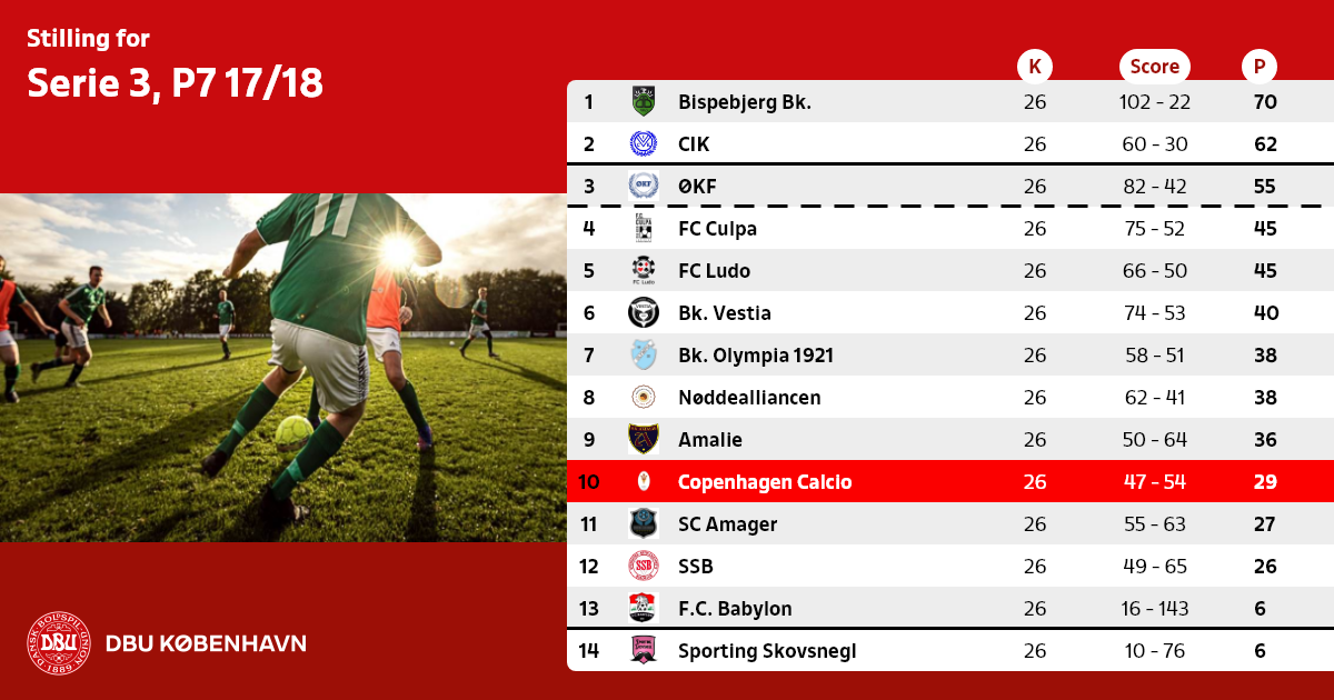 nr. 1 og 2 rykker op i Serie 2, pulje 4. Nr. 3 rykker op, såfremt der ikke findes et oprykningsberettiget hold fra Serie 1, pulje 3 til Københavnsserien efter 2018 forår.