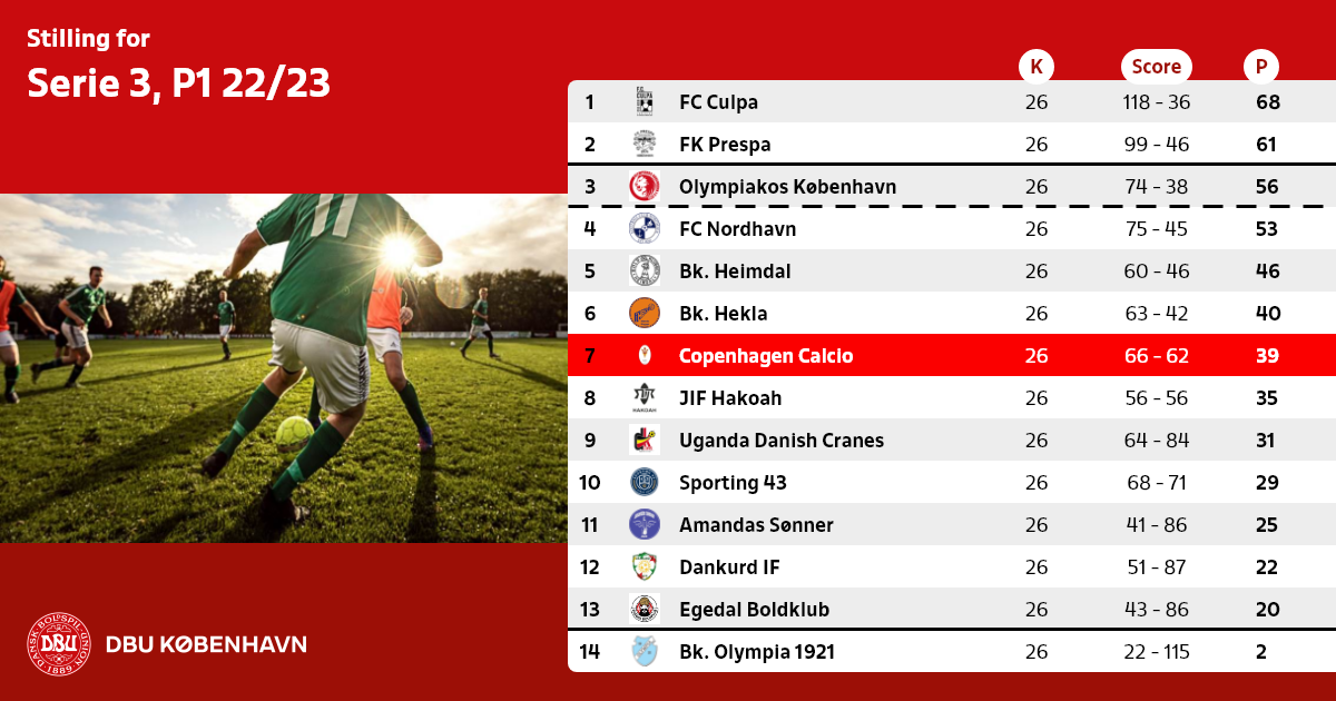 Antal hold, der rykker ned til Serie 4 pulje 1 svarer til antallet af DBU København 1. hold, der rykker ud af Københavnsserien.