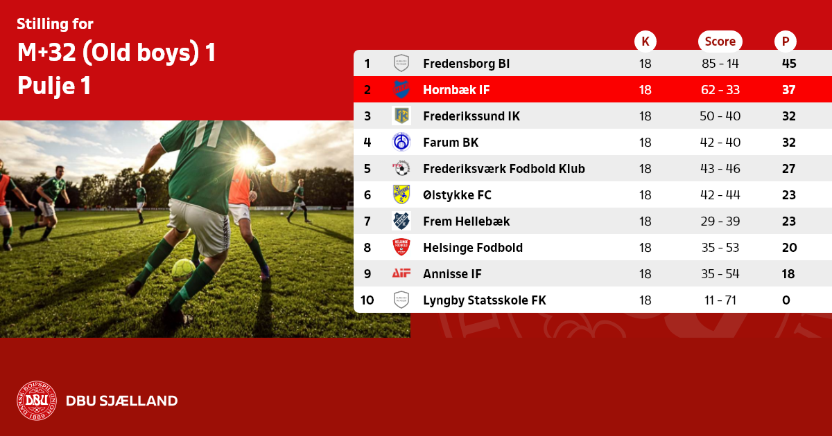 FINALE om SM og oprykning til M+32 Øst, spilles søndag den 6. oktober kl. 13.00 på Vedbæk Stadion.