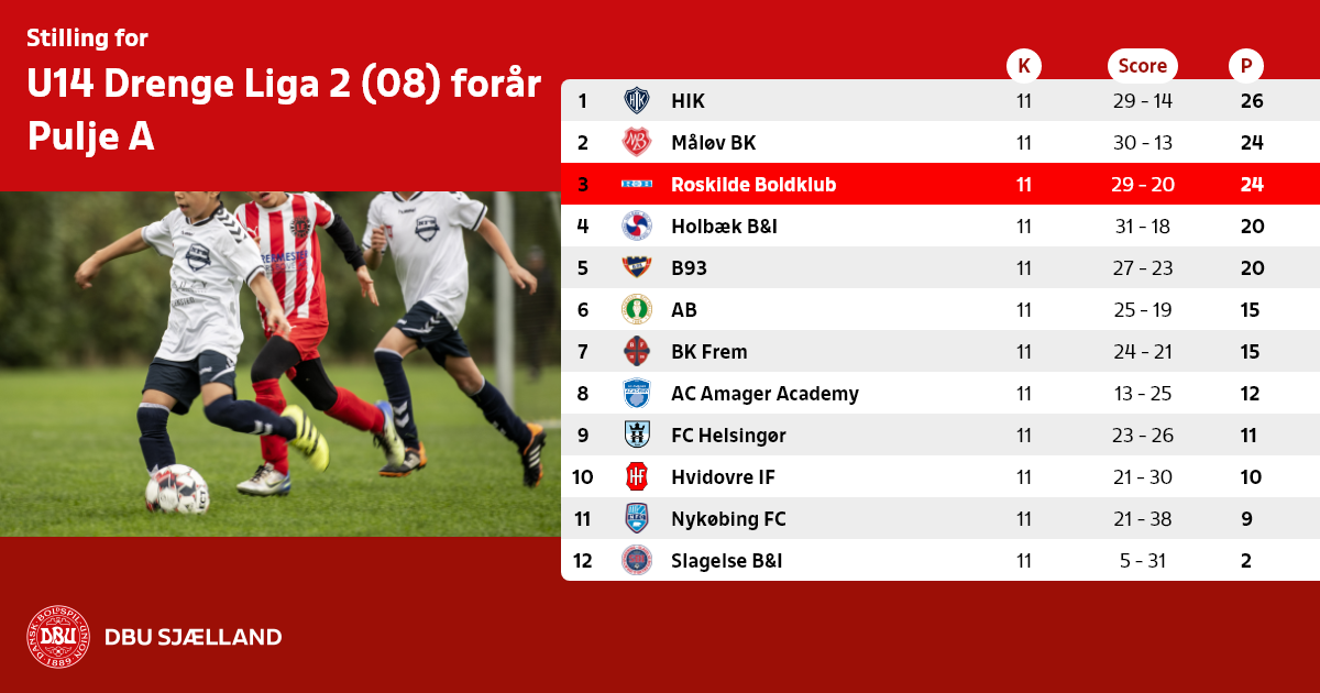 U14 Drenge Liga 2 (08) forår, Pulje A