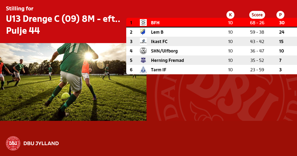 Der skal udfyldes elektronisk holdkort i denne række via DBU's Fodbold APP eller på www.dbujylland.dk - "Mit DBU" - HUSK at der også skal p&ari