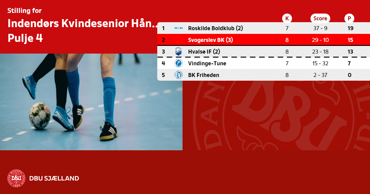 B = 20 hold rykker ned i række B til mellemrunden 14. januar 2024.