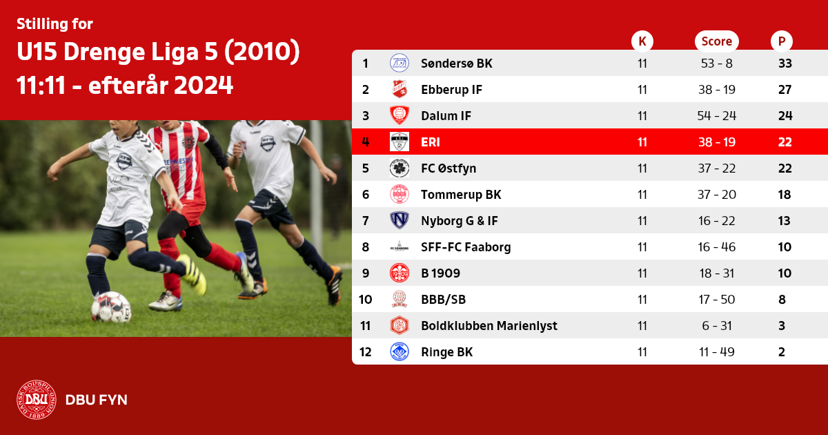 U15 Drenge Liga 5 (2010) 11:11 - efterår 2024