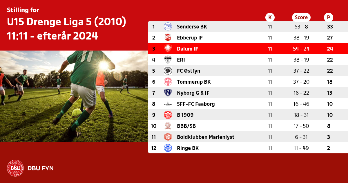 U15 Drenge Liga 5 (2010) 11:11 - efterår 2024
