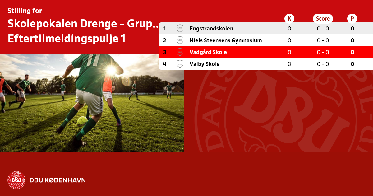Skolepokalen Drenge - Gruppespil 1 - 2025/26 Kbh, Eftertilmeldingspulje 1