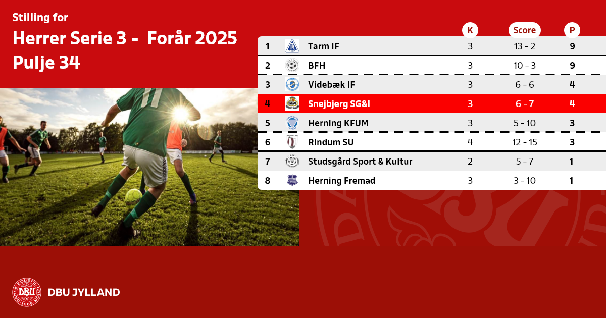 Bedste hold på 6. pladsen undgår play-off og bliver i rækken: Kristrup B (pulje 36).
