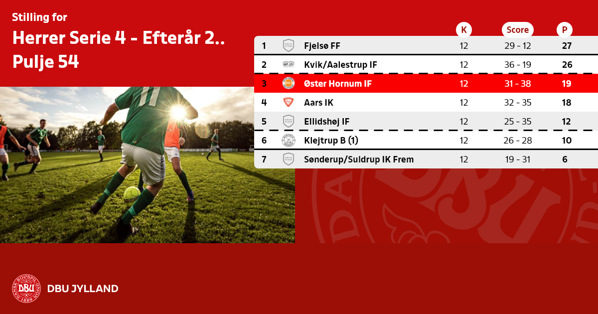 Med forbehold for forkert indtastede resultater, protester etc. forbliver følgende 16 hold på 6. pladsen i serie 4: Hjørring AIK Frem (48), Moseby B (50), Biersted IF (51), Østersundby B32 (52), VHG/GS (53), Skelund IF (55), Sjørring B2 (56), Vinderslev IF (63), Kristrup B (64), Eliten FC (68), Fuglebakken BK (69), IF Lyseng 2 (70), Horsens KFUM (73), Hornsyld IF (74), Grejsdal Sport (76), SDU Fodbold Kolding (80)