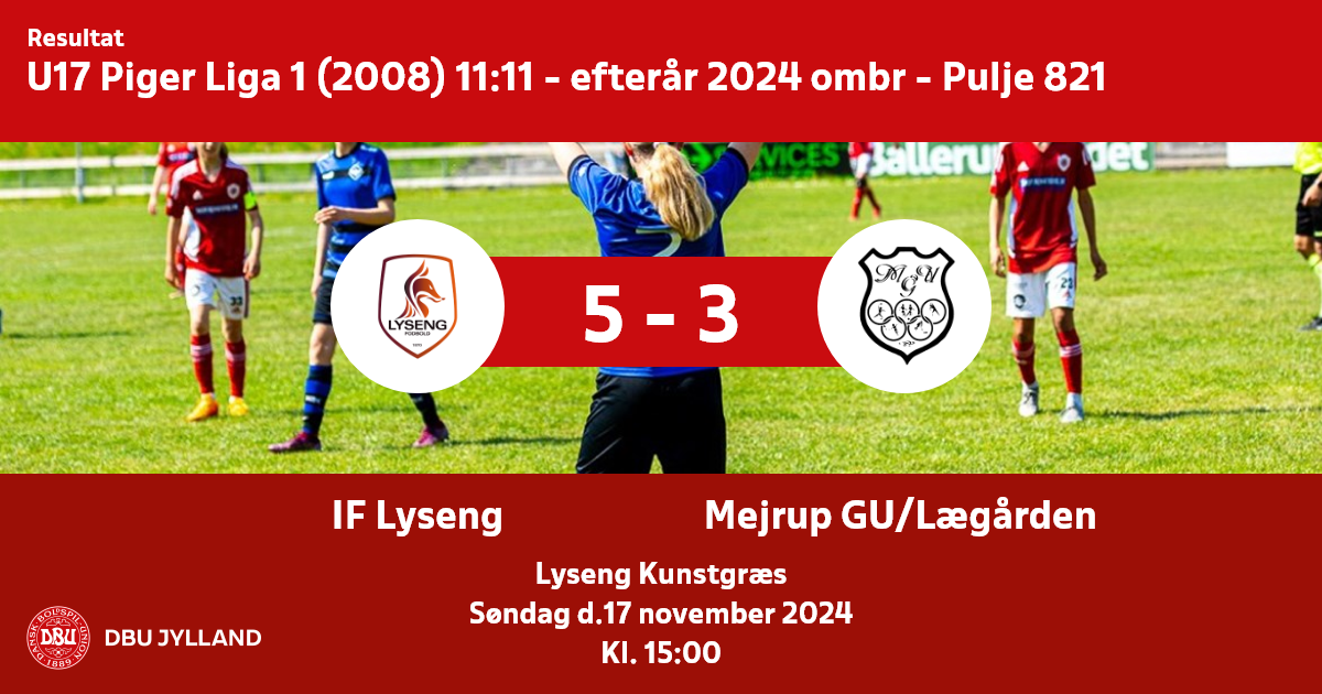 U17 Piger Liga 1 (2008) 11:11 - efterår 2024 ombr